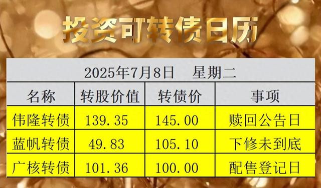伟隆转债满足赎回条件,公司宣布强赎,利空转债,详见赎回信息列表。