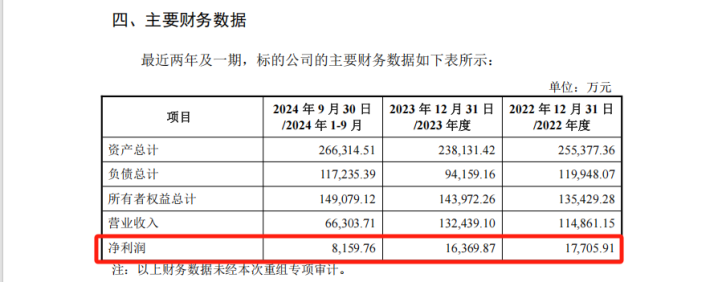 2022年、2023年及2024年前三季度,中核科技的营业收入分别为11.49亿元、13.24亿元、6.63亿元,净利润分别为1.77亿元、1.64亿元、8159.76万元。